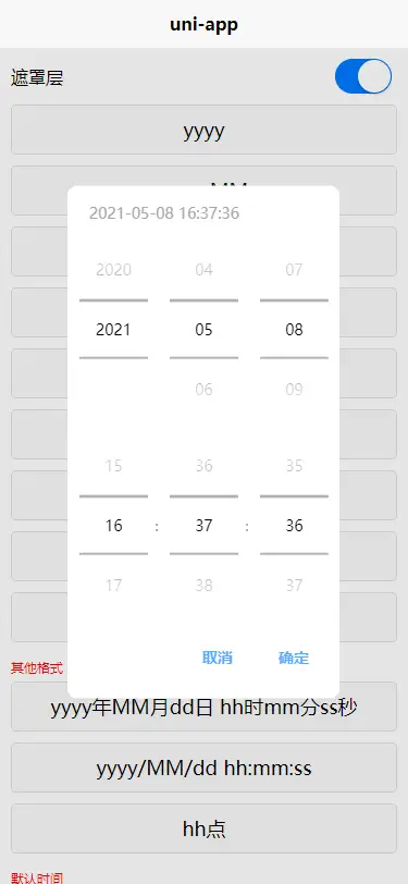 <ch-datetime-picker :isShow="show" @cancle="cancel" @confirm="confirm"></ch-datetime-picker>