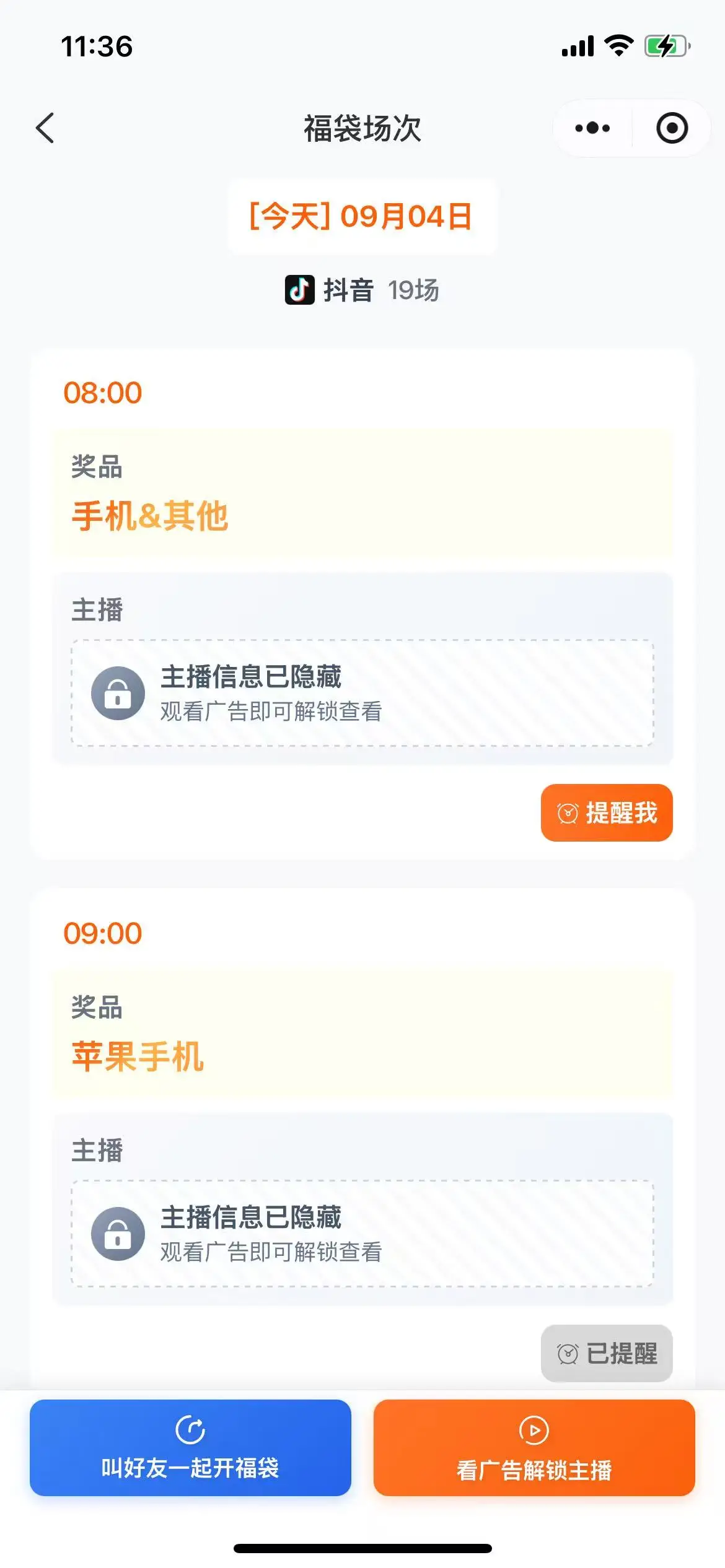 玩法逻辑:系统每天自动收集次日各平台福袋开播时间,抽奖活动的视频地址,用户看广告解锁信息。