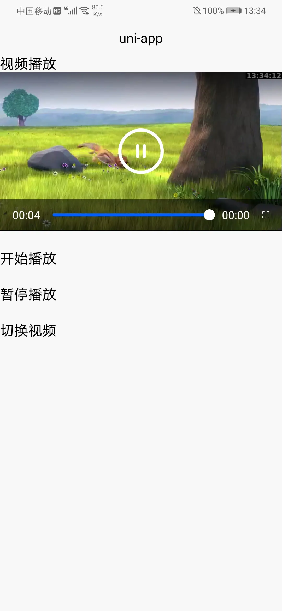 - 暂停、播放、全屏、可拖动进度条,开始播放、播放进度、播放失败、播放结束、从第几秒开始播放