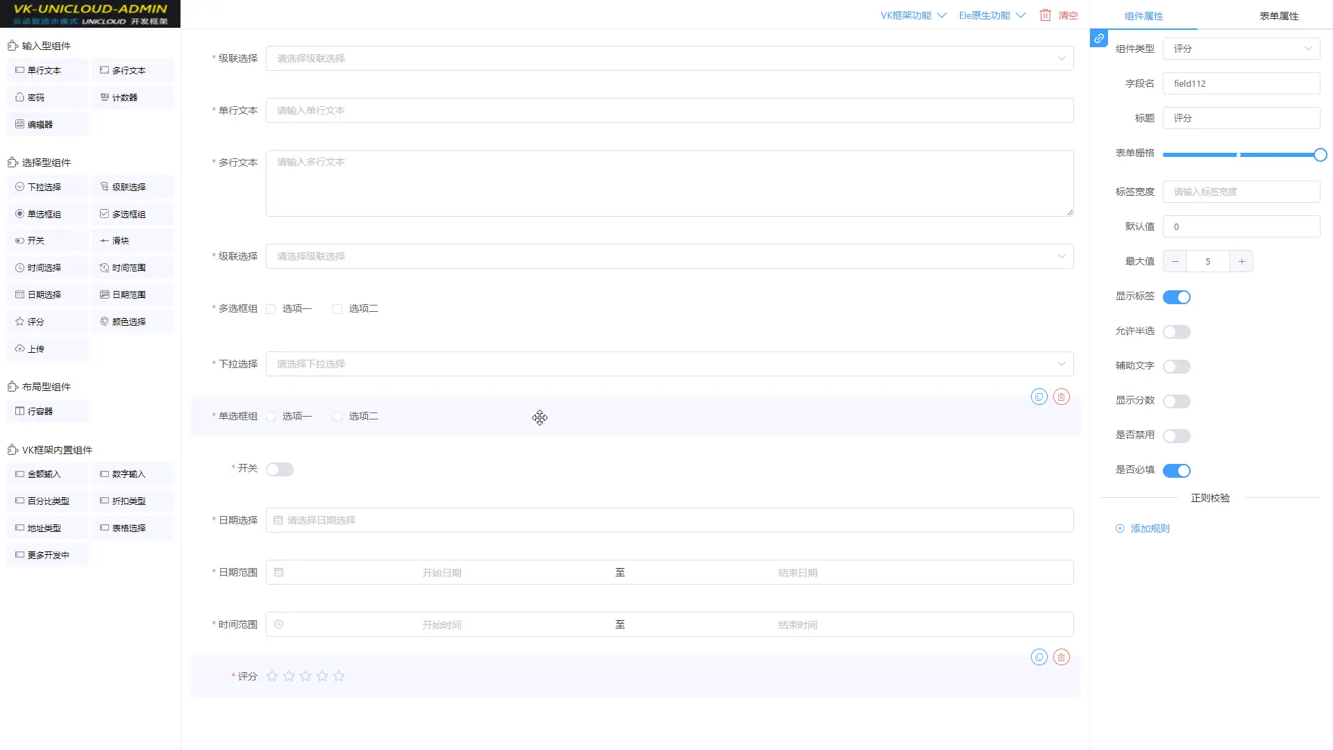 表单可视化拖拽工具(可直接生成vk框架代码和element原生代码 点击体验 - 4、