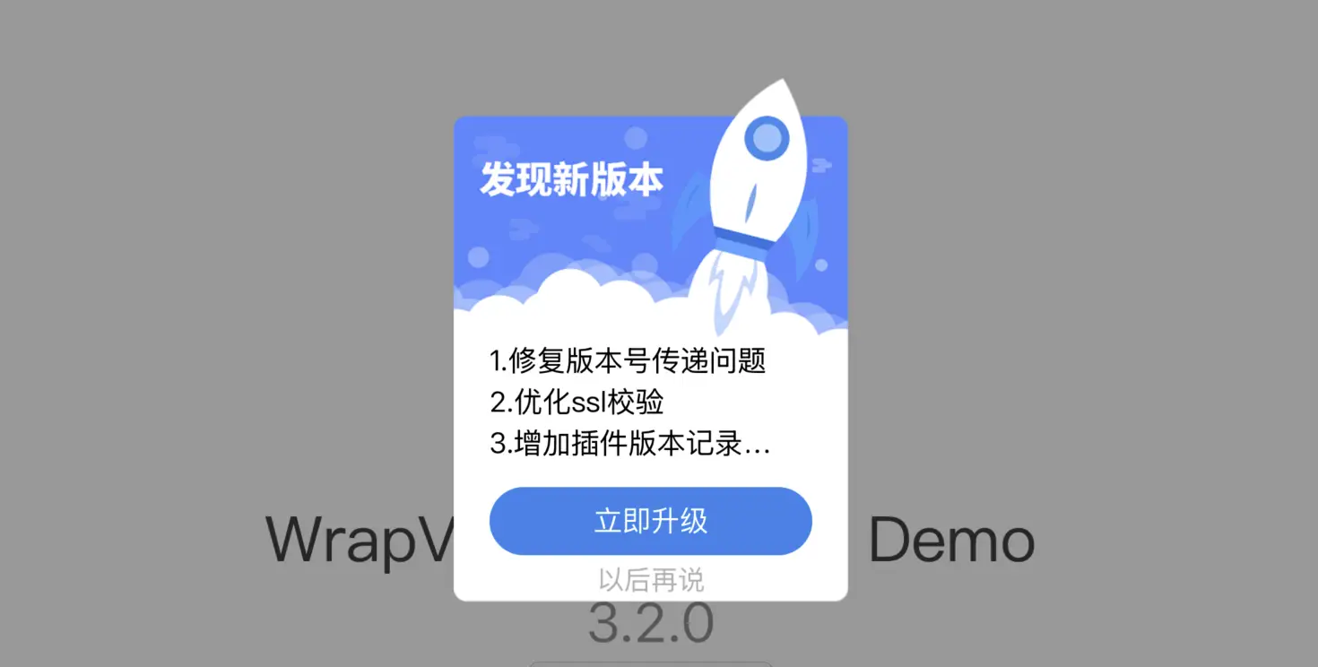 | errToast | 检测新版本接口请求失败是否展示错误信息 | Boolean | true |