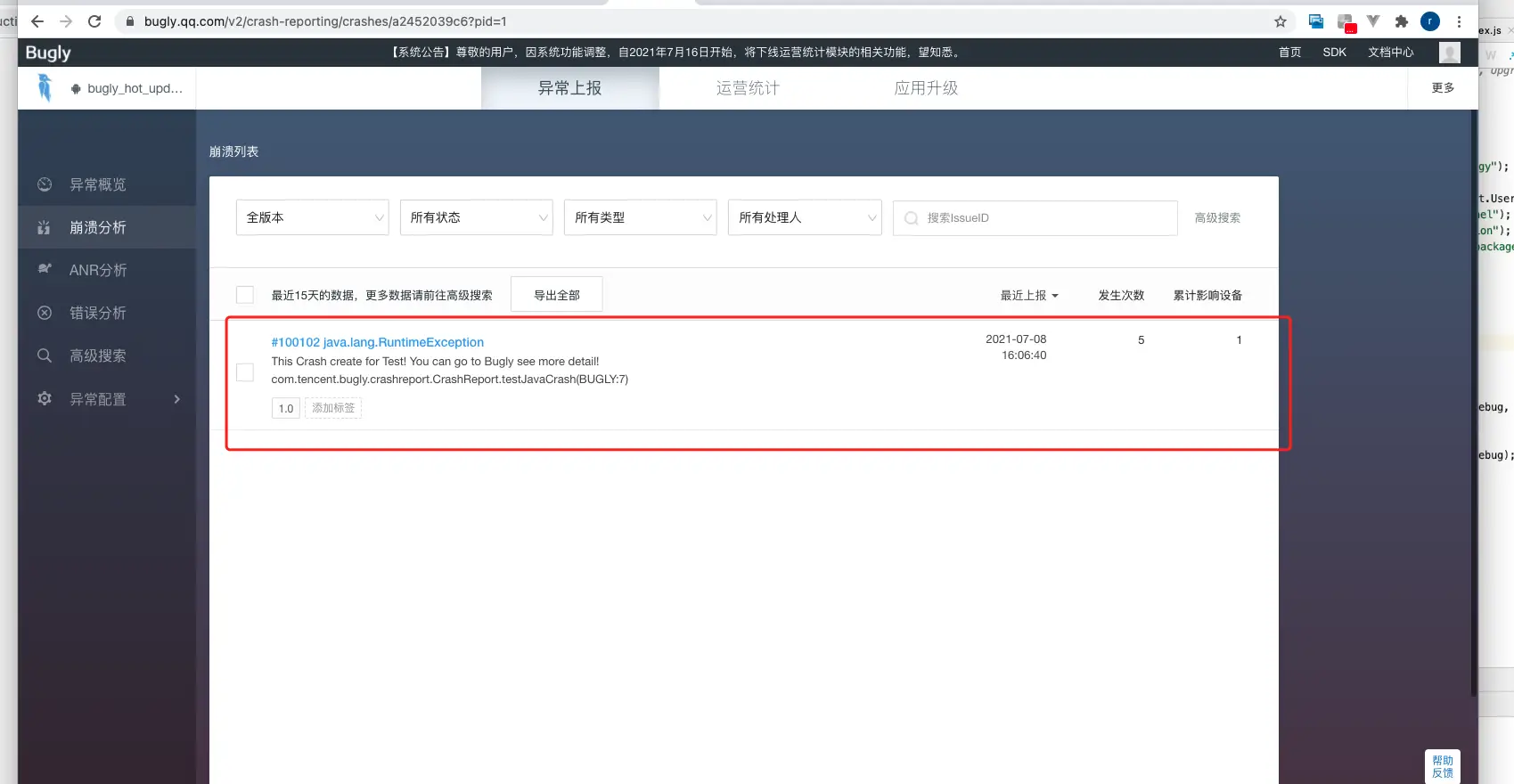 // 自定义日志功能 我们提供了自定义Log的接口,用于记录一些开发者关心的调试日志,可以更全面地反应App异常时的前后文环境。使用方式与android.util.Log一致。用户传入TAG和日志内容。该日志将在Logcat输出,并在发生异常时上报。