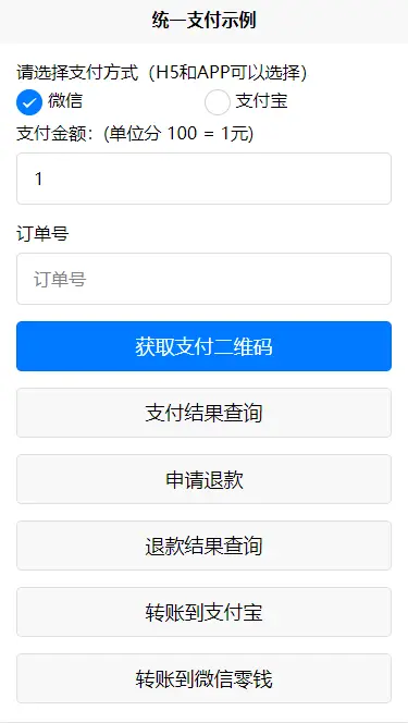 | 付款码支付(新增于1.14.0) | 支持 | 商家扫用户的付款码支付 | 支付宝当面付、***付款码支付 |