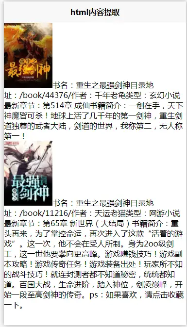| [getTagsALL] | Array | - | 获取指定标签名包裹的多个内容 传入参数1 解析内容 参数2 div、li、style等 注意:该方法只能找 如:XXXXX这类不加CLASS的标签 |