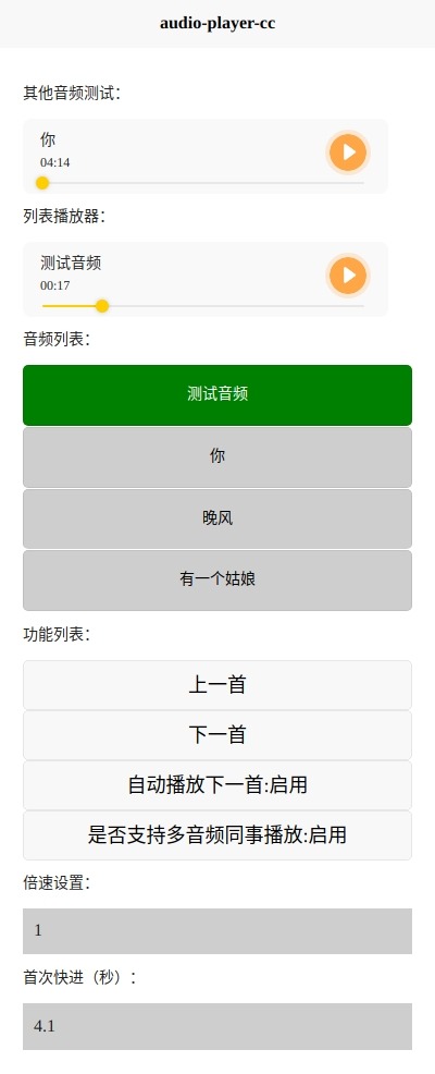 新增播放列表demo,添加上一曲,下一曲,自动循环播放,倍速设置,首次初始化调整进度,进度拖动,多音频共同播放,并做了一些优化。