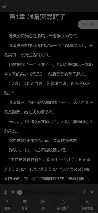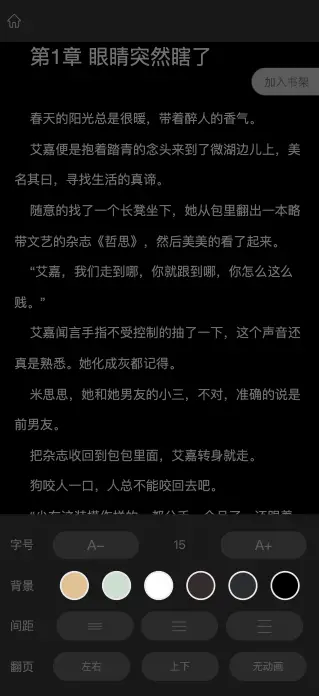 修改了页面样式,自动翻页逻辑修改,新增上下、左右翻页方式,翻页仿真跟字体正在尝试,后期接入 听小说
