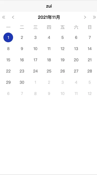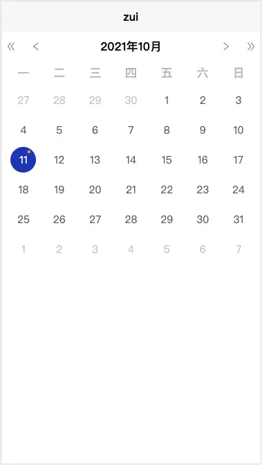 | @month-change | 月份改变(年或者月改变)时触发,返回值为选中日期的时间对象,当月份或者年改变时默认选中日期为该月份1号 |