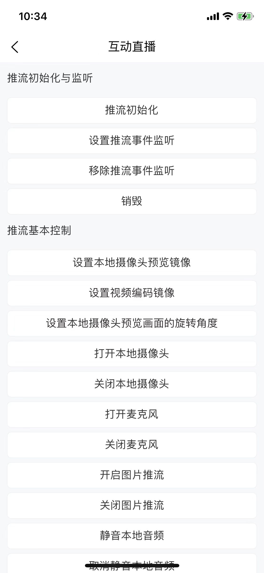 - 能力支持:直播推流、观众连麦、主播 PK 和直播播放。
