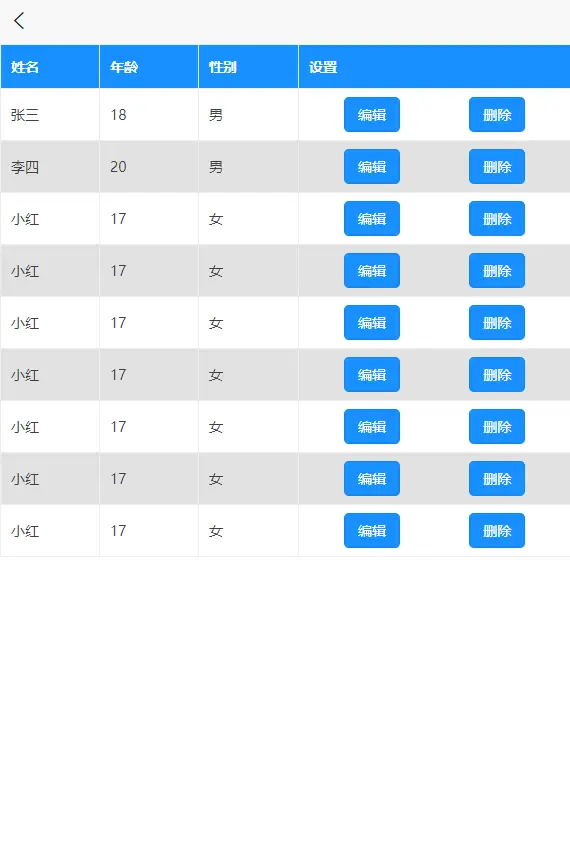 | columns | Array | [] | 必填,列头 | columns: [{name: 'name',info: 姓名',},{name: 'age',info: '年龄',},{name: 'sex',info: '性别',}] | |