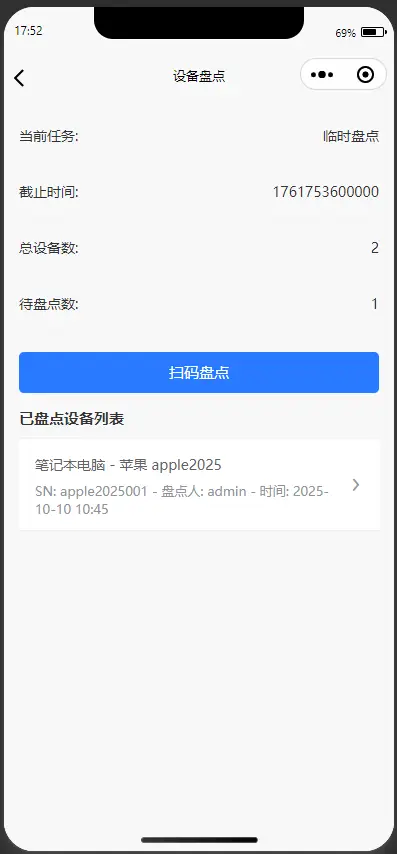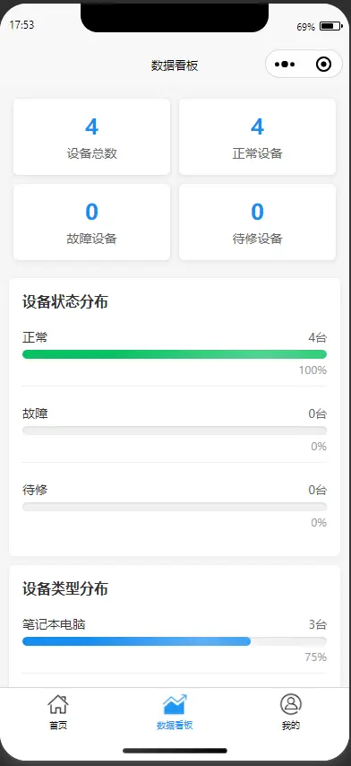 开源!!!免费!!! 基于vk的vue3版本重构; 重构了设备盘点功能,更符合使用实际; 部分功能迁移至pc后台; 新版本已发布上线,可以扫描小程序二维码体验(开通了广告,看能不能顾住云空间费用,请多体谅); 如有问题反馈,意见建议,定制开发,可加微***。