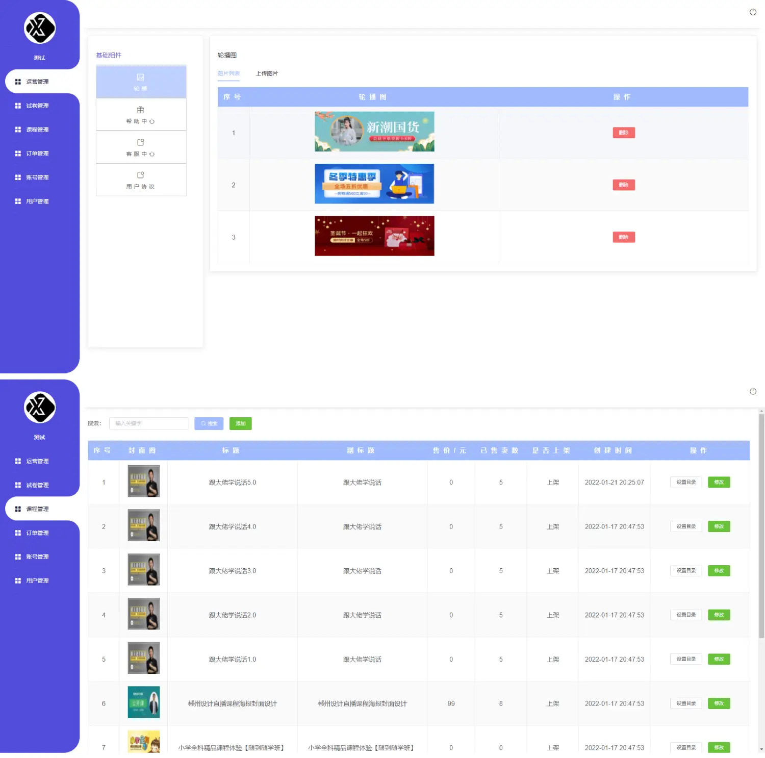后台语言java spring boot maven框架 ;管理端:Vue-element-ui;小程序:uniapp 的一体的知识付费开源项目,前后端分离。