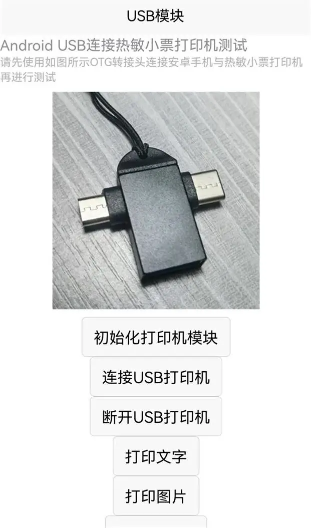 本插件提供安卓手机通过USB接口连接热敏小票打印机进行打印的相关功能。通过USB连接相比使用蓝牙连接更稳定。Android USB热敏小票打印机测试Demo 下载链接 密码:7bib