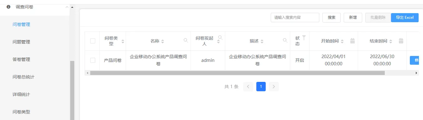 - 更新 问卷管理-新增问卷,状态默认为开启