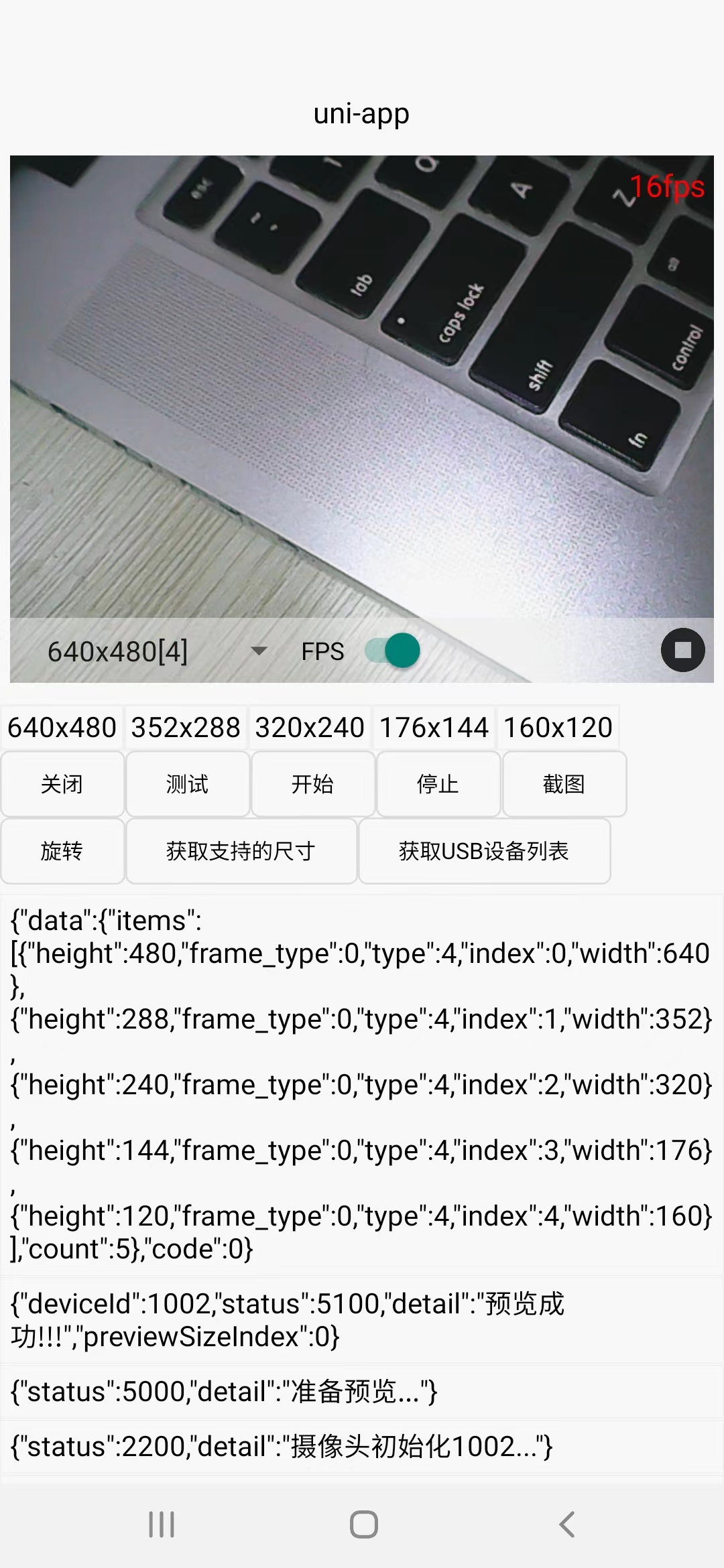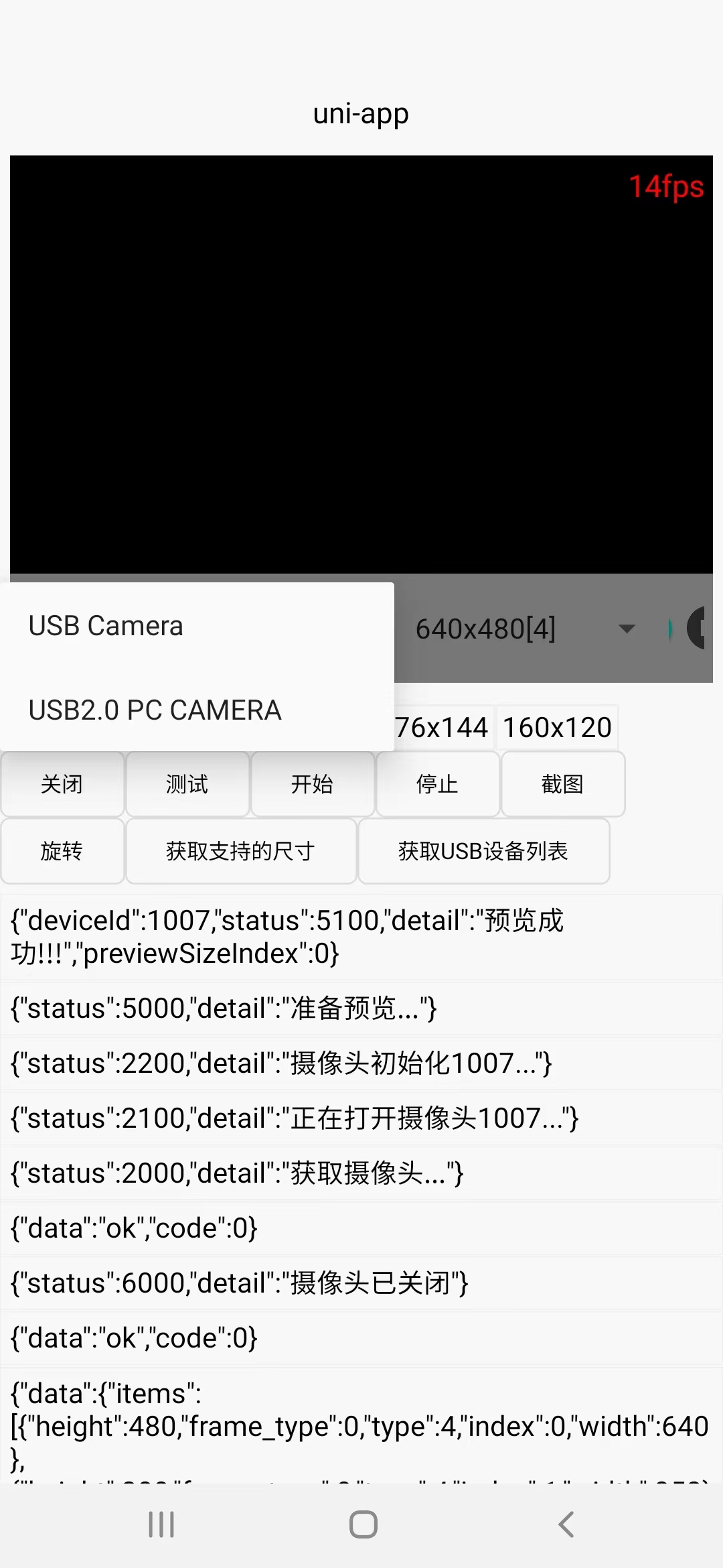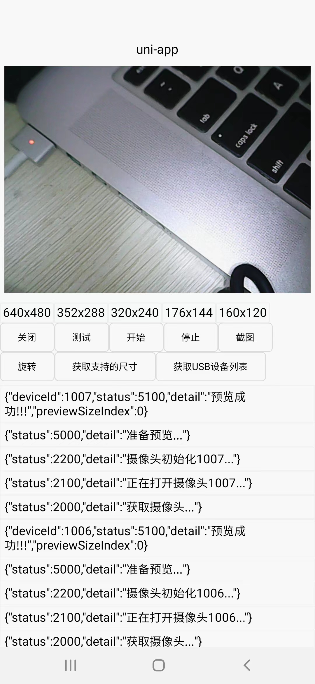 添加插件之后可以只用使用sintrb-uvcviewerUVC显示组件,只能在.nvue中用,该组件有以下方法: