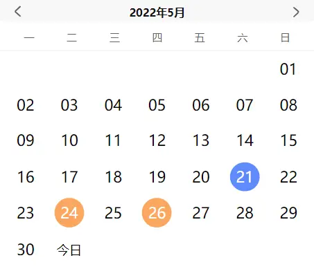 rows: [{ // 特殊日期标注数据,当前日期和标注颜色
