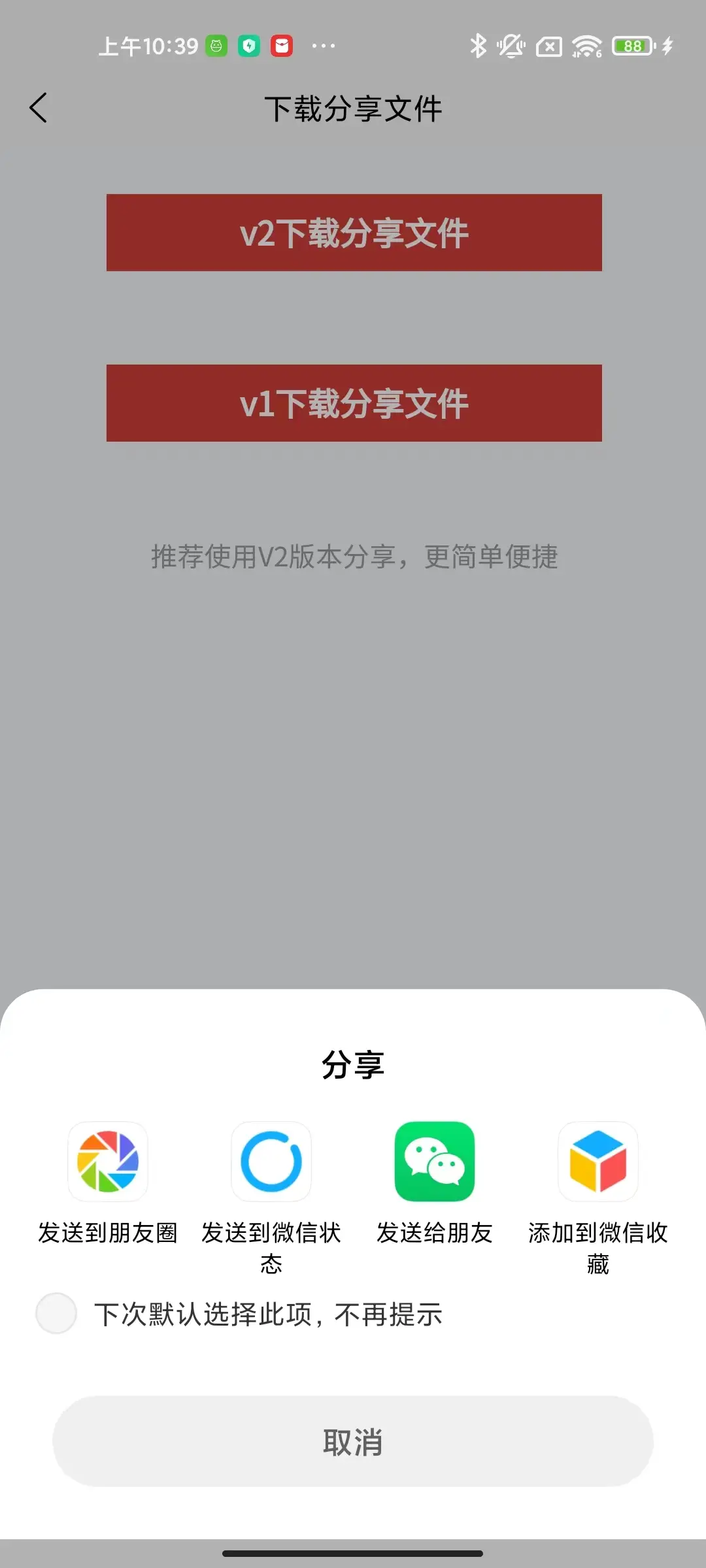 | shareFile2WX | 开始分享 | 无 | 非 |