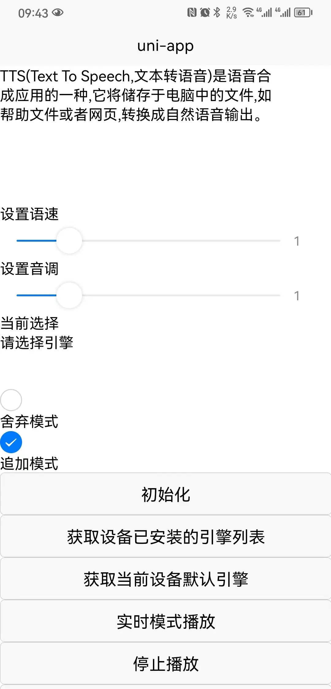 注意:此版本为应用商店版,若更新此版本需设置manifest.json中的 APP常用其他设置 -> minSdkVersion = 26,否则无法正常打包。如果需要minSdkVersion = 19版本的,请移步码云:https://gitee.com/lyq617/uniapp-text-to-speech-plugin自取离线包。