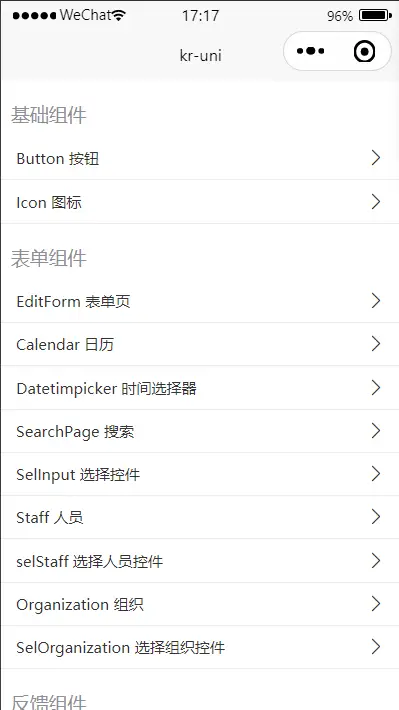 kr-uni是基于uView2.0封装的组件库,在uView2.0的基础上,提供更加方便的模板组件,支持H5,微信小程序等应用。
