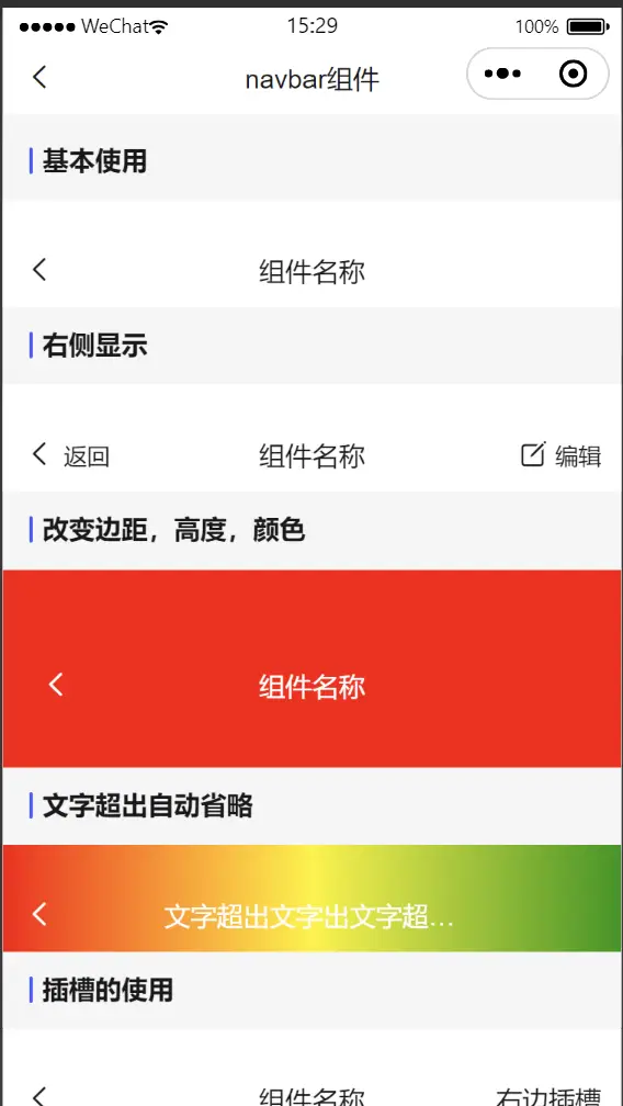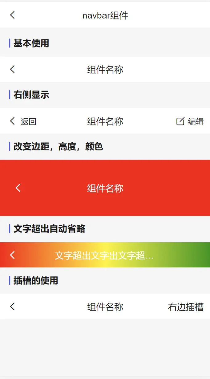 <zl-navbar title="组件名称" :padding="44" :bg-color="'#FF0000'" :header-bar-height="100" :txt-color="'#fff'" ></zl-navbar>