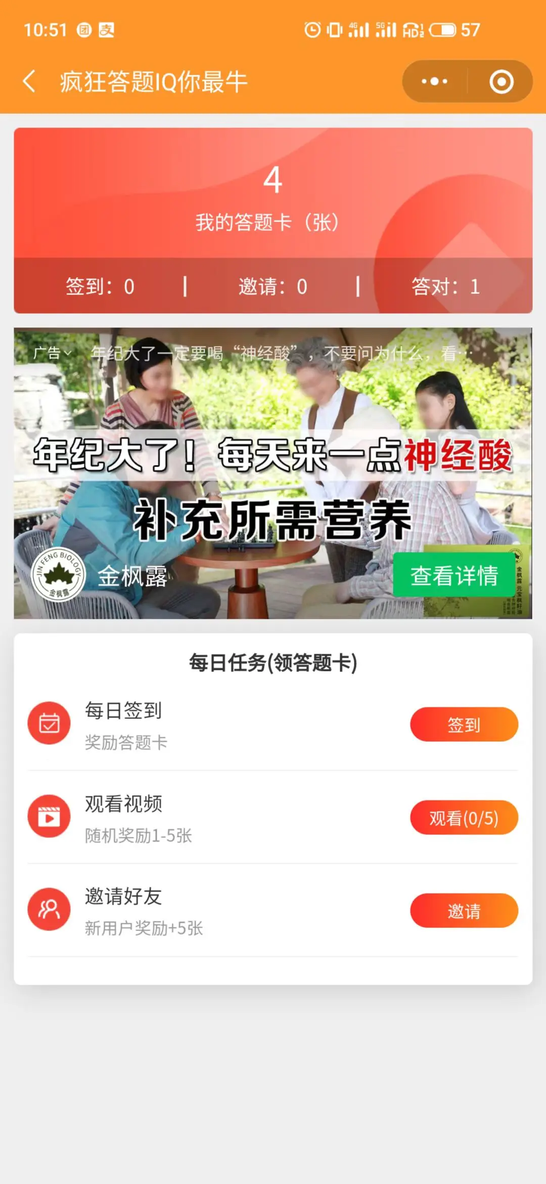 5.三种答题模式,可在后台切换,后台可设置邀请好友,观看激励视频,试玩小程序,可获取的答题卡,设置用户答题获得的红包大小,后台提现设置等等