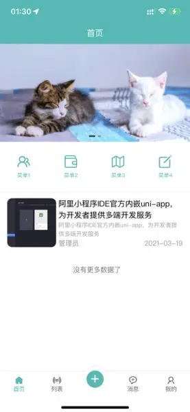菜单数据模型 return { tabbarIndex: 0, tablist: [{ text: "首页", isbulge: false, iconPath: "../../static/tabbar/home.png", selectedIconPath: "../../static/tabbar/homefill.png", pagePath: "/pages/home/home" }, { text: "列表", isbulge: false, iconPath: "../../static/tabbar/we.png", selectedIconPath: "../../static/tabbar/wefill.png", pagePath: "/pages/list/list" }, { text: "加入", isbulge: true,//是滞显示为凸起来的样式 iconPath: "../../static/tabbar/add.png", selectedIconPath: "../../static/tabbar/add.png", pagePath: "/pages/join/join" }, { text: "消息", isbulge: false, iconPath: "../../static/tabbar/message.png", selectedIconPath: "../../static/tabbar/messagefill.png", pagePath: "/pages/messge/messge" }, { text: "我的", isbulge: false, iconPath: "../../static/tabbar/my.png", selectedIconPath: "../../static/tabbar/myfill.png", pagePath: "/pages/ucenter/ucenter" }, ], };
