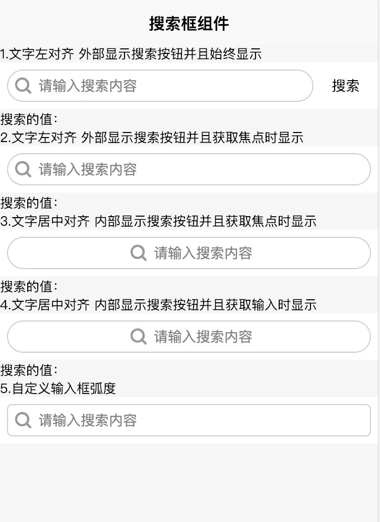 | placeholder | string | 请输入搜索内容 | 占位提示 ,最多7个字符 ,否者可能会显示不全 |