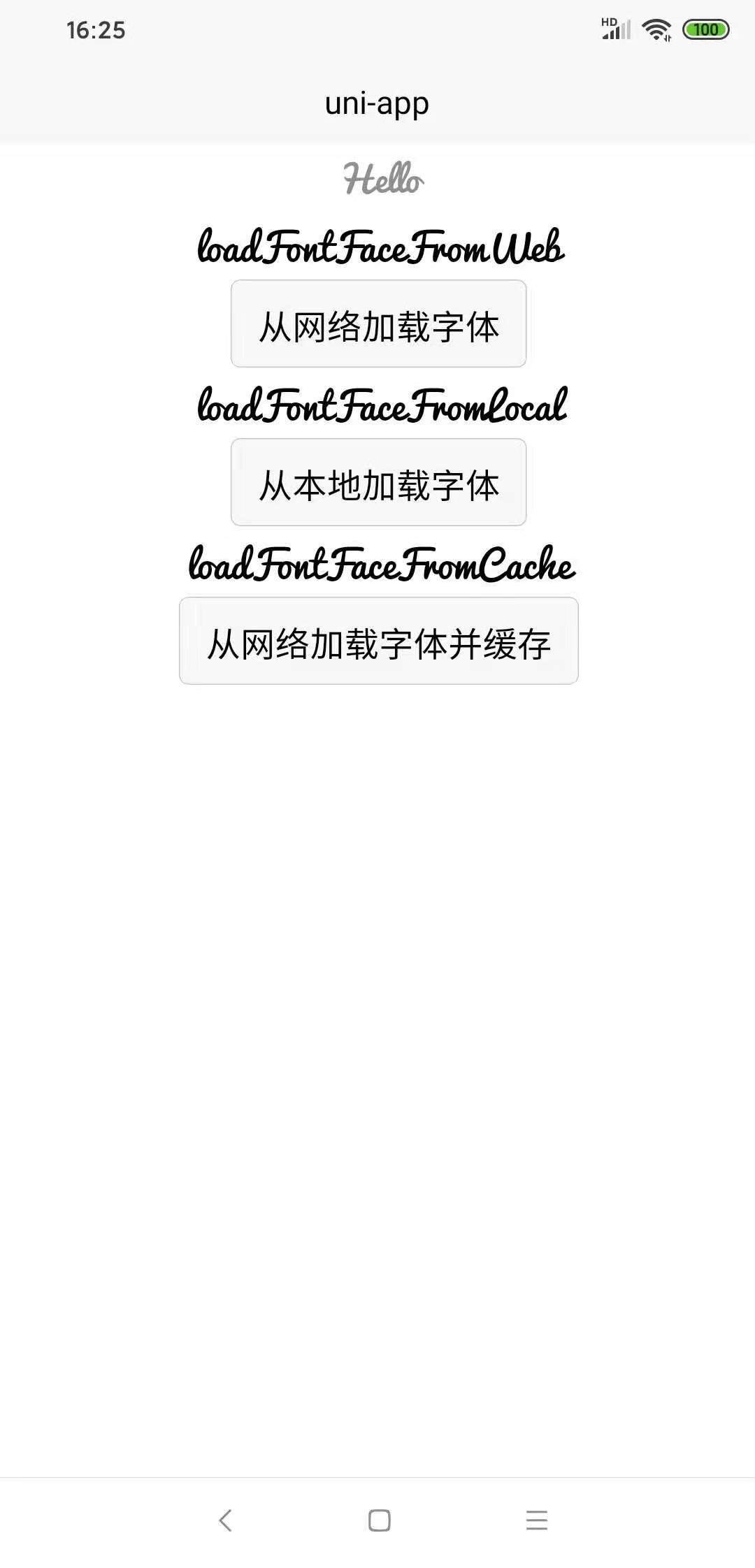 本示例仅支持vue页面(本地字体仅App端支持),使用的 API 是 uni.loadFontFace,具体的使用方法和限制可参考文档。