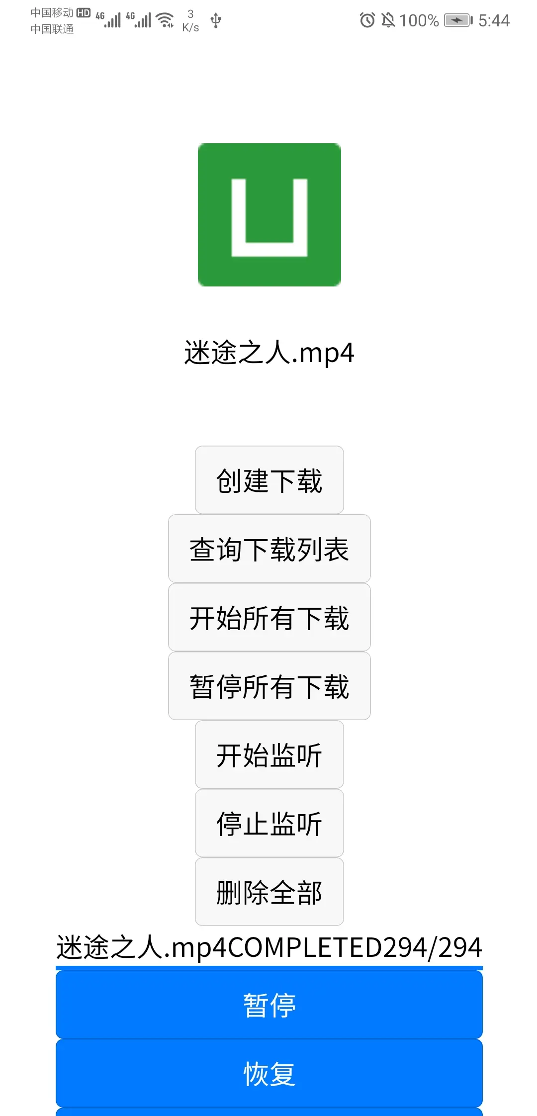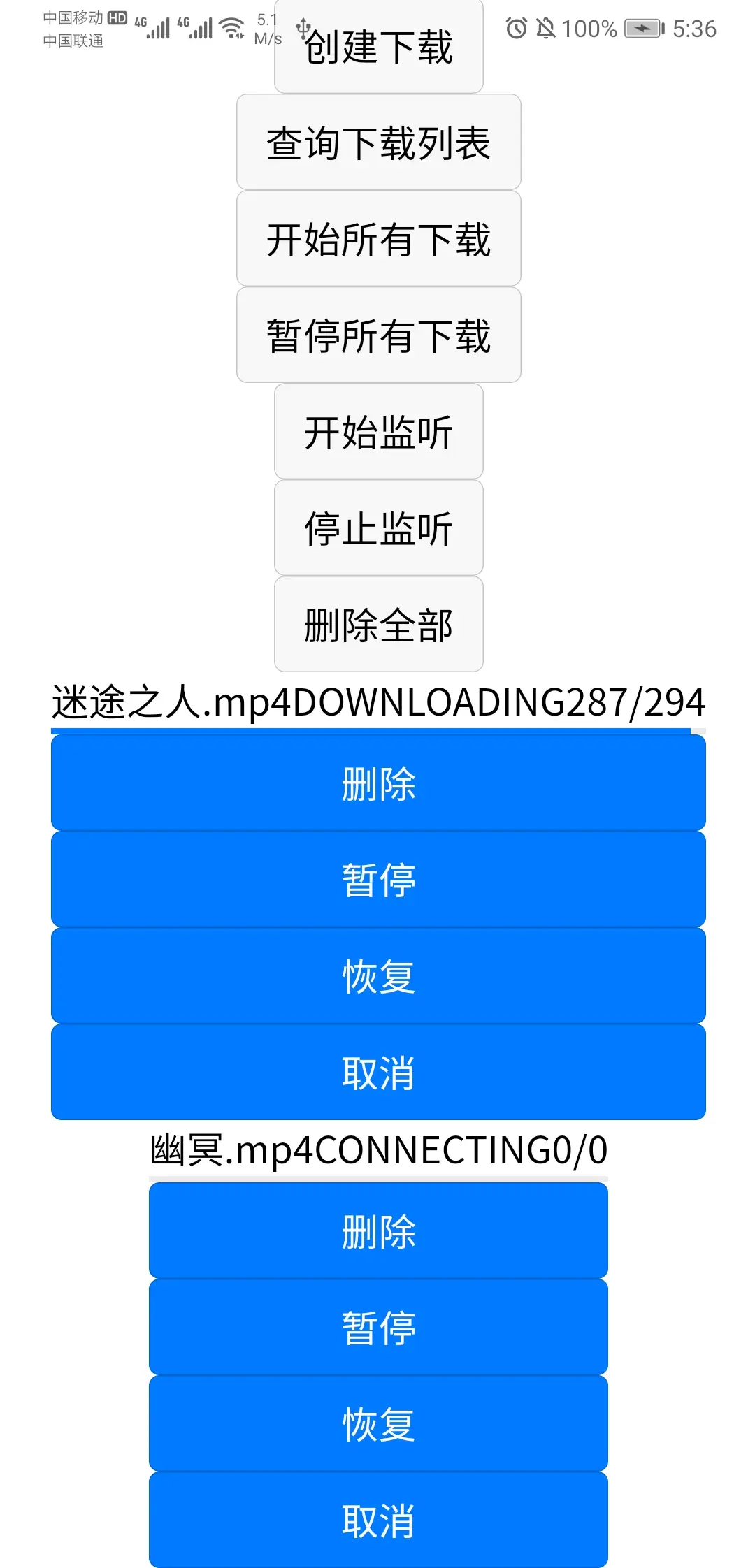 listener() 开始监听下载任务,返回各任务的下载状态及进度,回调周期1秒1条